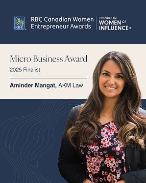 We’re excited to share that Aminder Kaur Mangat, founder of AKM Law, has been named a 2025 top three finalist in the RBC Canadian Women Entrepreneur Awards for Micro-Business. This national recognition celebrates not only her achievements as a legal entrepreneur but also her dedication to making a real difference in Canadian immigration law.
